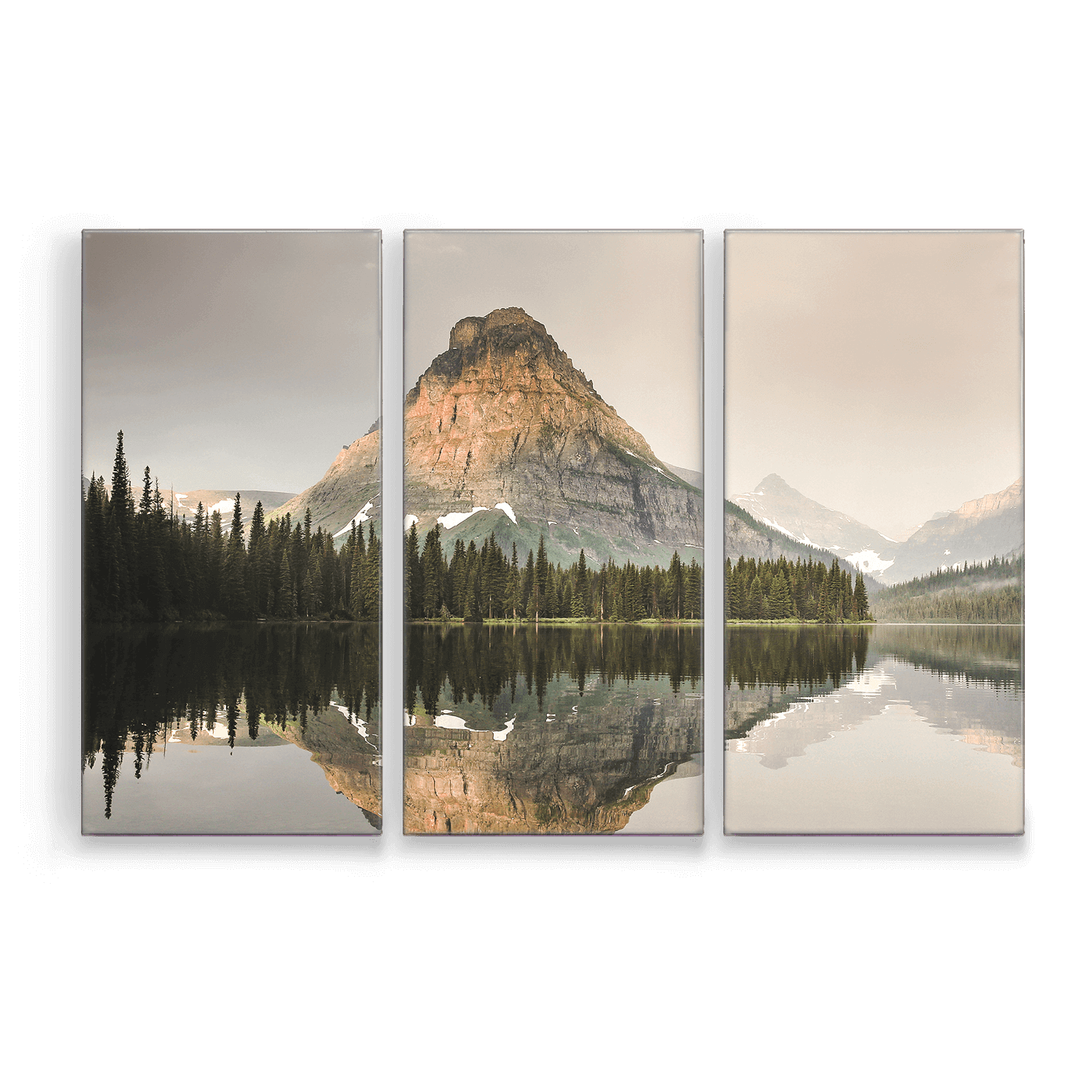 Capture the serene and untouched beauty of Two Medicine in Glacier National Park with this captivating triptych wall art. Featuring the iconic Sinopah Mountain mirrored perfectly in the calm, glassy waters of Two Medicine Lake. The gentle hues of dusk bathe the landscape in a soft light, enhancing the tranquil and majestic atmosphere of this hidden gem. Perfect for nature lovers and those who appreciate the quiet grandeur of natural landscapes, this artwork brings the peaceful solitude of Glacier National Park's lesser-known region into your living space.
