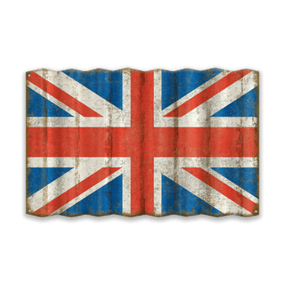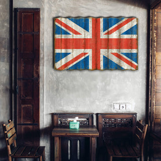 This captivating artwork features a vintage rendition of the Union Jack, the national flag of the United Kingdom, displayed on a corrugated metal sign. The flag's iconic design, with its bold red, white, and blue colors, is overlaid with a distressed look that gives it a rugged, historical appeal. Perfect for those who appreciate both national pride and a touch of antique charm, this piece brings a slice of British heritage to any space. Ideal for adding character to home or office decor.