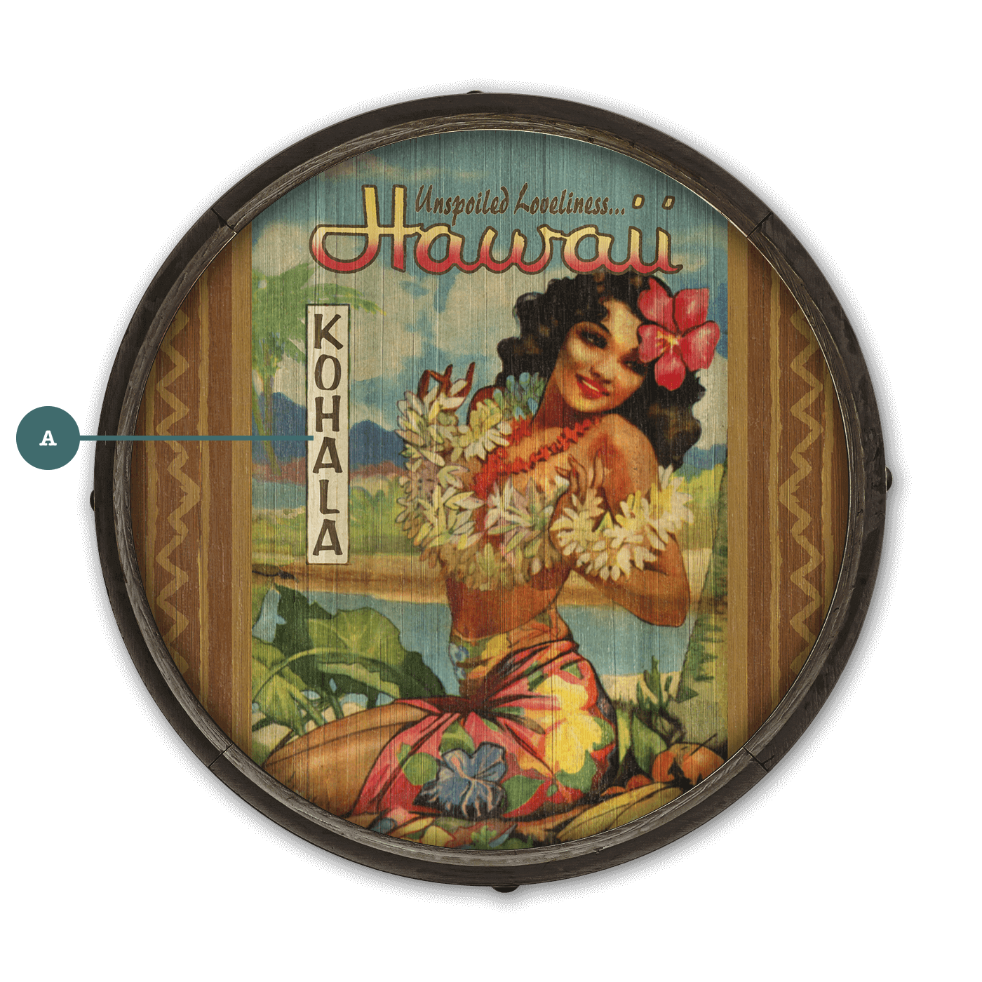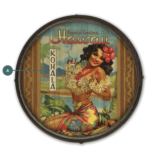 This vintage-inspired artwork captures the enchanting beauty of Hawaii, featuring a Hawaiian woman adorned with traditional floral leis and a vibrant tropical skirt. The artwork emphasizes Hawaii’s "Unspoiled Loveliness" and highlights the Kohala region, evoking a nostalgic, island paradise vibe. Ideal for decor in Hawaiian-themed spaces, it brings a warm, retro feel that celebrates the rich culture and natural allure of Hawaii.