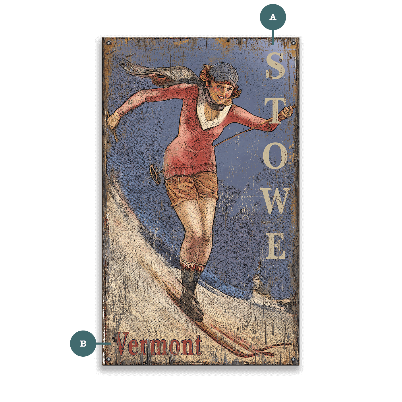 Vintage Ski Gal - Wood & Metal Wall Art