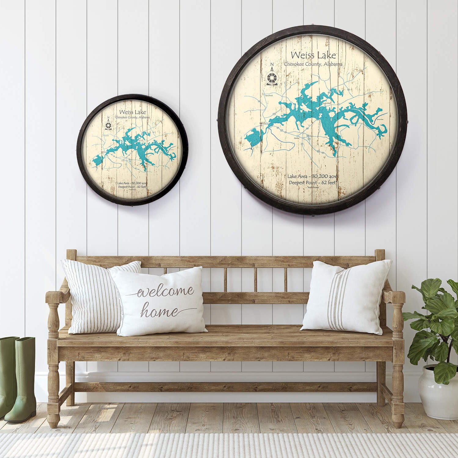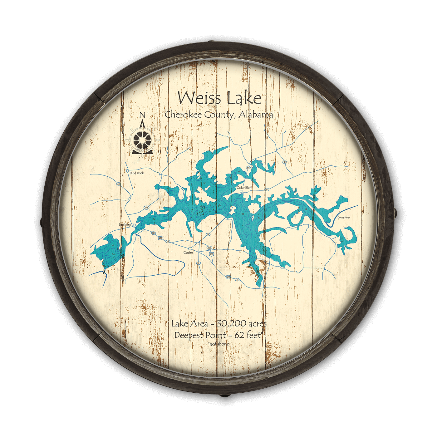 Add a touch of rustic charm to your living space with our beautiful Weiss Lake decorative map. This unique piece is sure to be a conversation starter, impressing all who lay eyes on it.