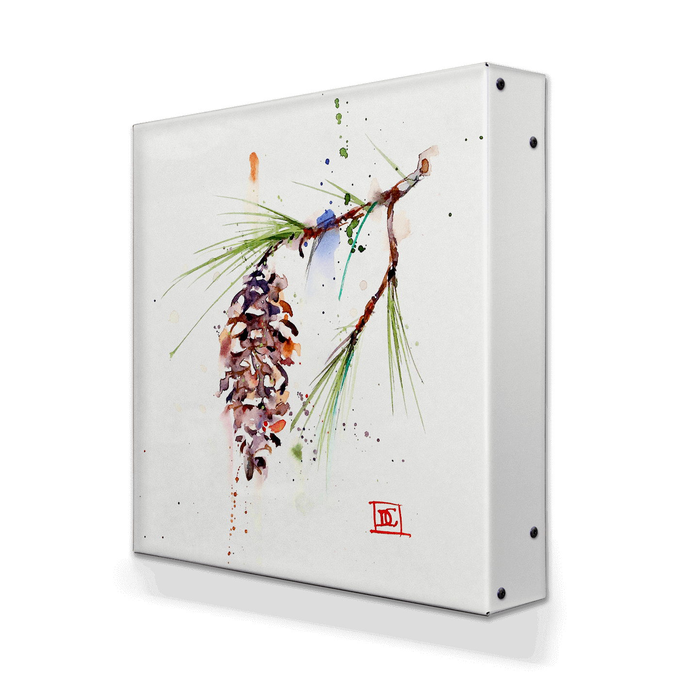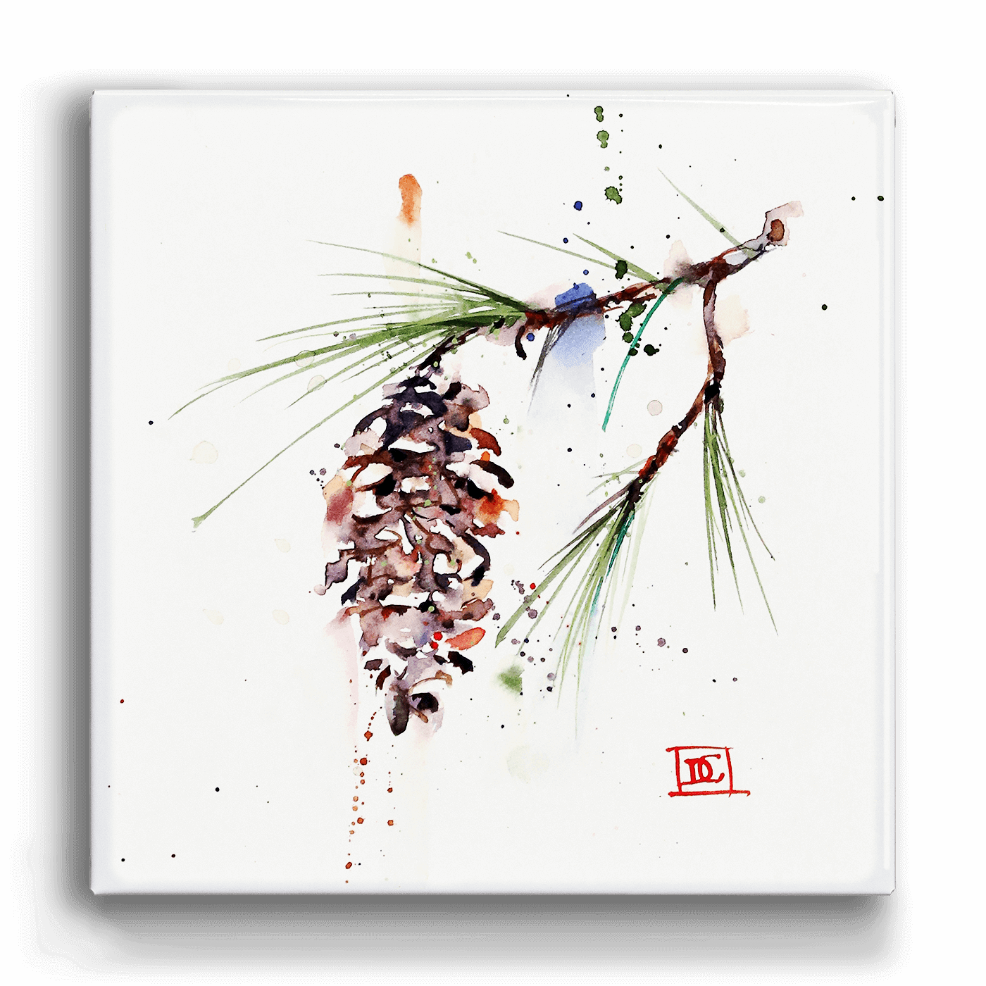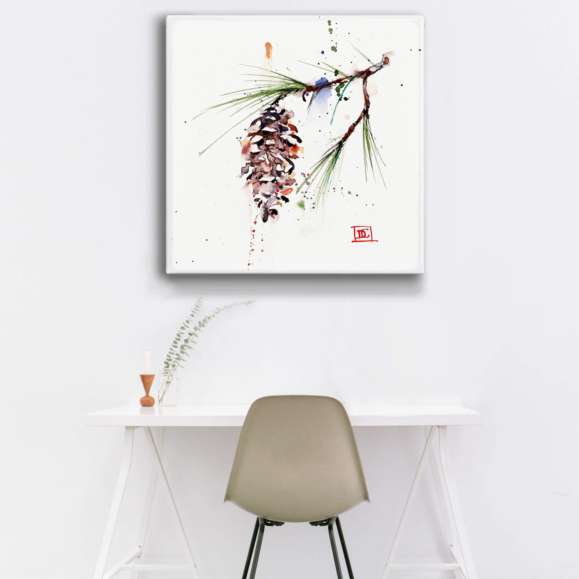 This watercolor painting captures the simple beauty of a pine cone hanging from a branch, set against a crisp, white background. The artwork’s detailed brushwork and earthy palette evoke the rustic charm of the forest. Perfect for those seeking to bring a touch of nature's understated elegance into their space, this piece is a subtle nod to the wonders of the wilderness.
