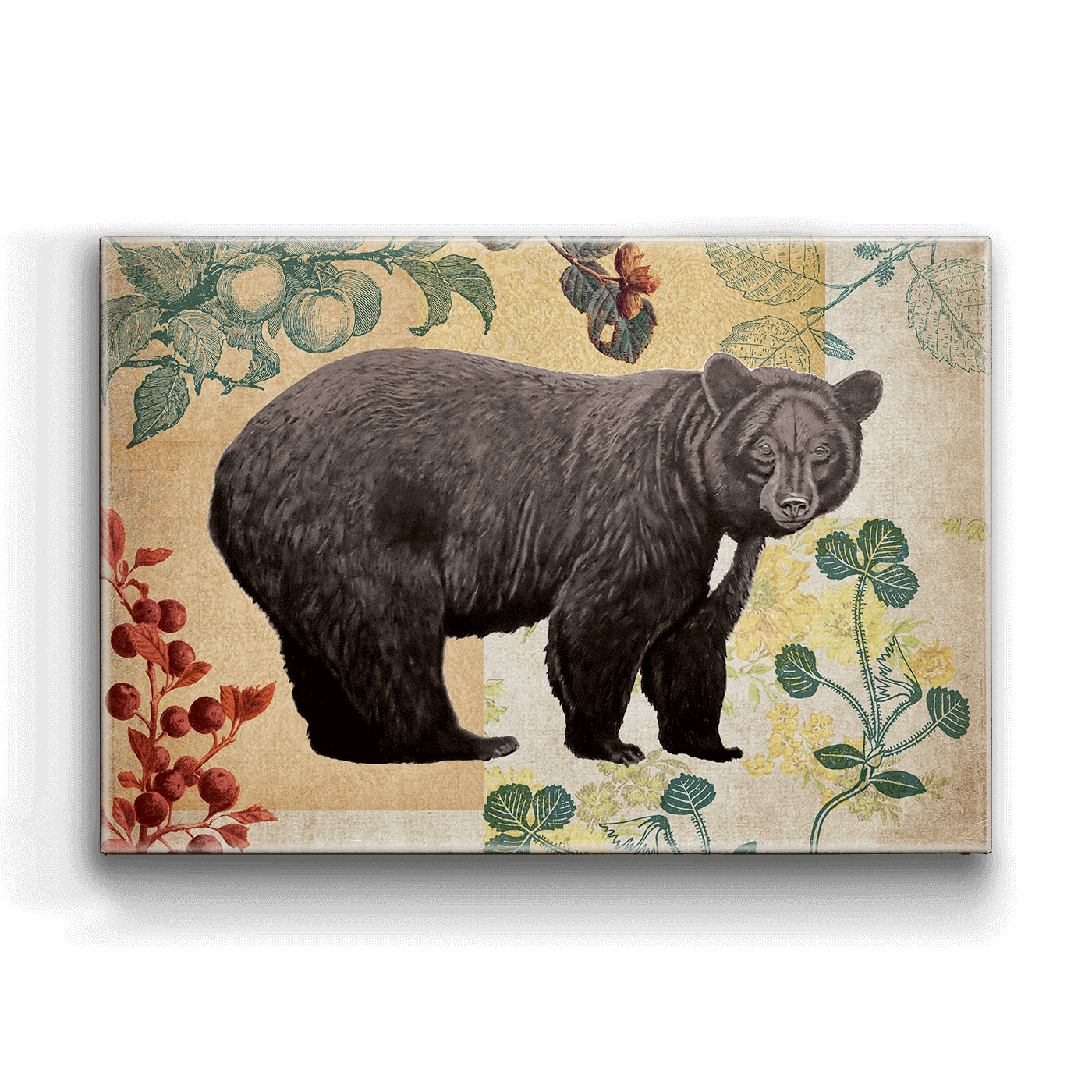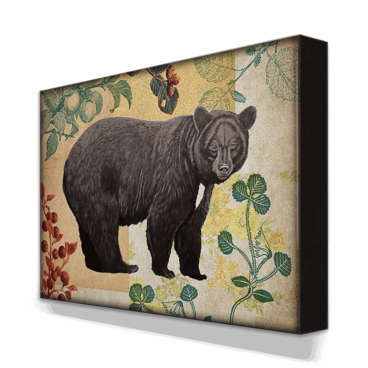 The bear, an emblem of strength and majesty. The depiction of this imposing creature in its natural habitat highlights the grandeur of the wilderness, invoking feelings of tranquility. The bear's powerful presence against a verdant backdrop of forest flora creates a visually stunning contrast that breathes life into any room.