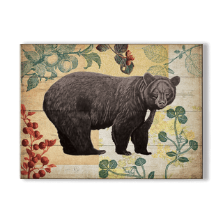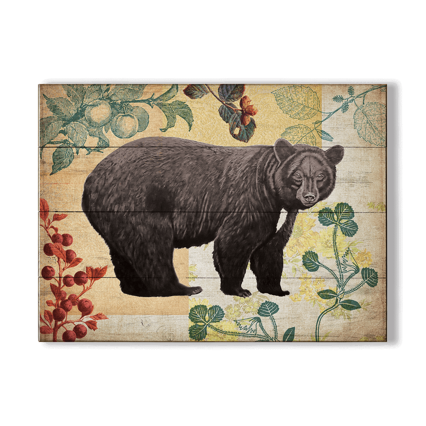 The bear, an emblem of strength and majesty. The depiction of this imposing creature in its natural habitat highlights the grandeur of the wilderness, invoking feelings of tranquility. The bear's powerful presence against a verdant backdrop of forest flora creates a visually stunning contrast that breathes life into any room.