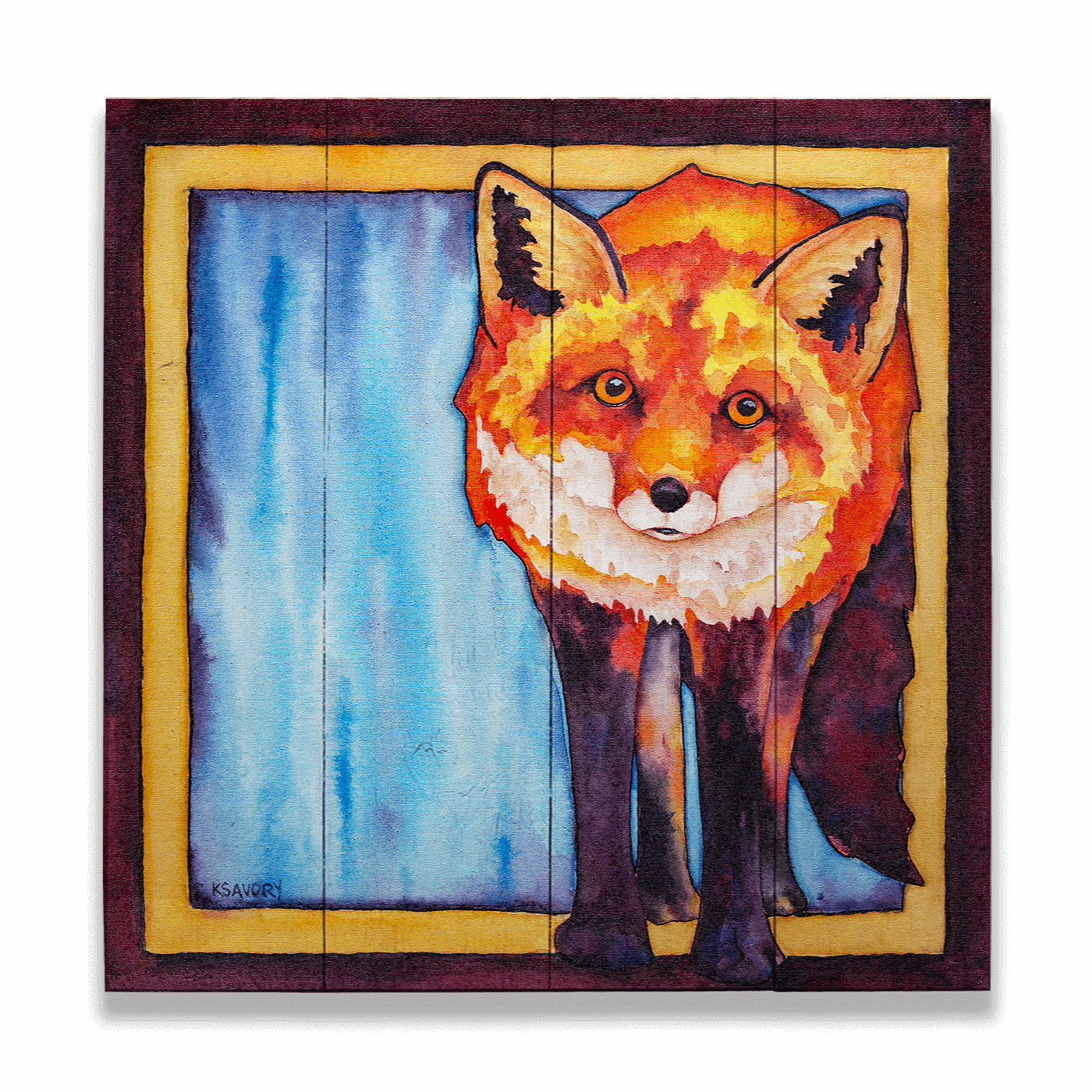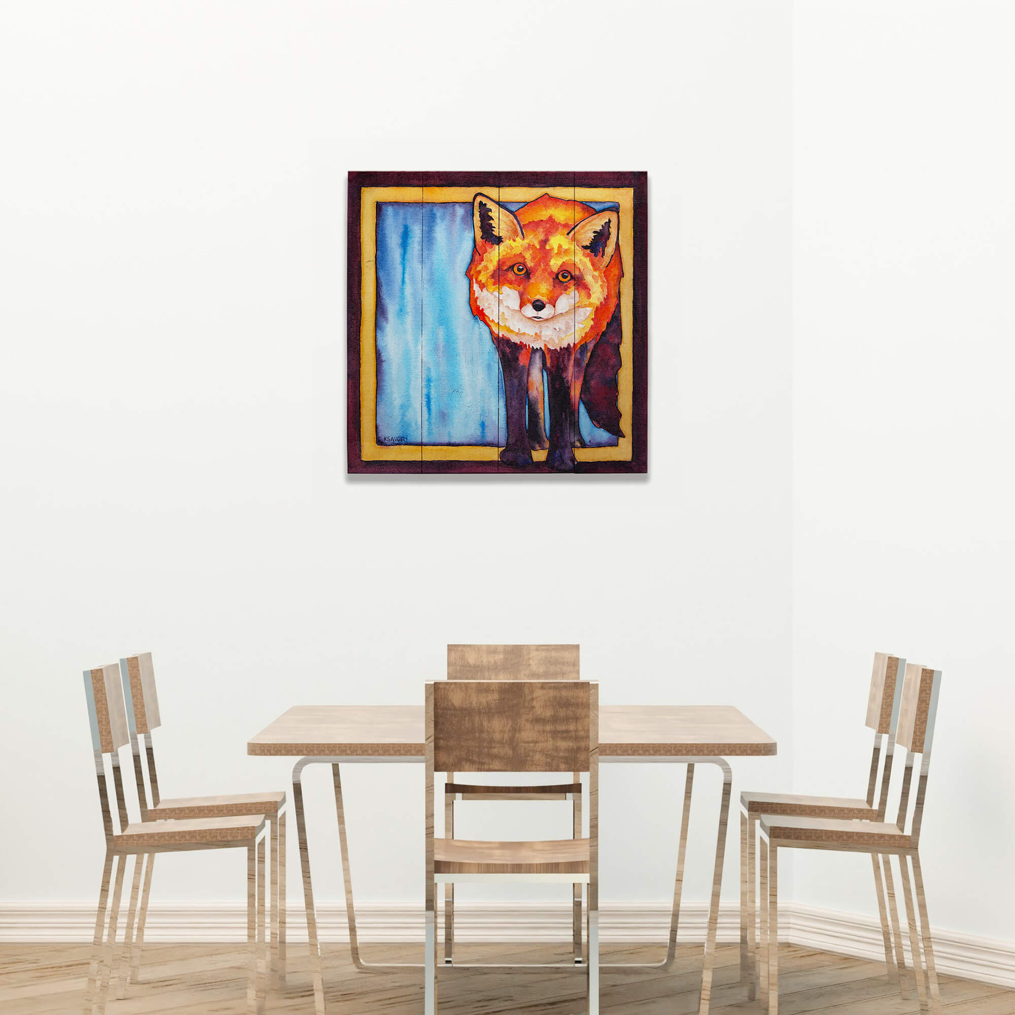Capture the beauty and mystery of the wild with this stunning fox artwork. The vibrant orange and red tones of the fox’s fur contrast beautifully with the cool blue background, creating a striking and balanced composition. Framed within a bold border, the fox's gaze is both curious and captivating, inviting viewers into its world. Perfect for animal lovers and nature enthusiasts, this piece brings a touch of wilderness and warmth to any space. Enhance your decor with this exquisite representation of one of nature’s most intriguing creatures.