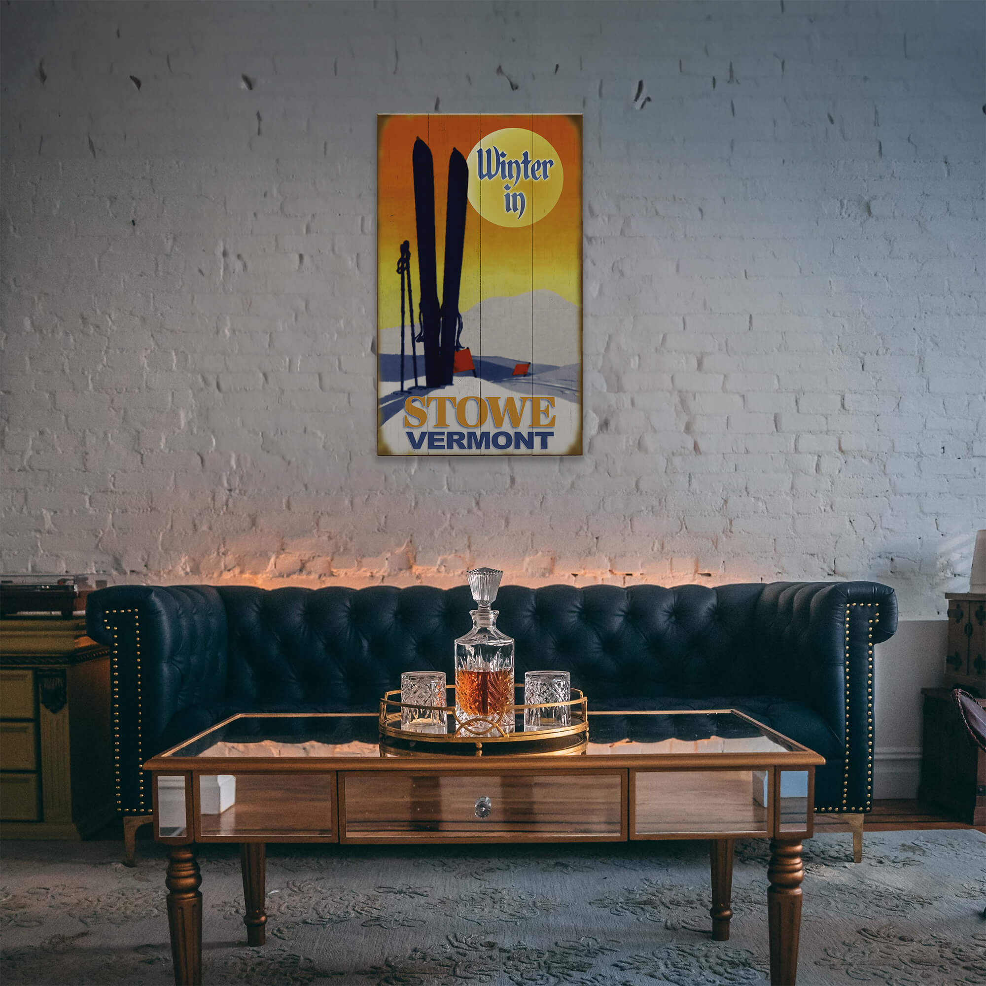 Warm the walls of your winter home with this serene artwork of a frosty winter scene bathed in vibrant hues of twilight. The silhouette of skis and poles propped in snow against a glowing sunset backdrop captures the delightful end to a day on the slopes. Perfect for lovers of winter sports and nostalgic design, it brings a sense of adventure and tranquility to any space.