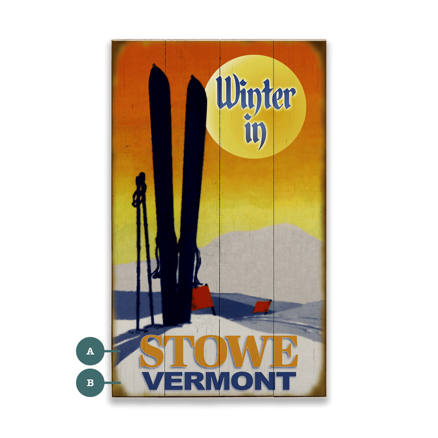 Enjoy complimentary personalization for this piece, meticulously handcrafted by our graphic design team. Specify your desired text for points A and B. To ensure perfection in your custom piece, please verify your text carefully. Missing personalization information will revert to our default design as shown. To remove all text from a field, type "Remove" in that field.