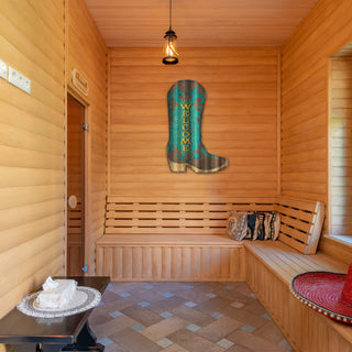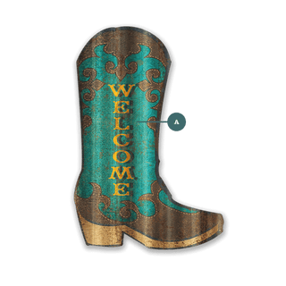 With a bold turquoise hue and intricate Western scrollwork, this cowboy boot design captures the essence of frontier hospitality. The warm "WELCOME" lettering stands out, inviting guests with a blend of rustic charm and cowboy spirit. Whether adorning a ranch entryway, a country-style home, or a Western-themed space, this piece embodies the adventurous, openhearted nature of the West.