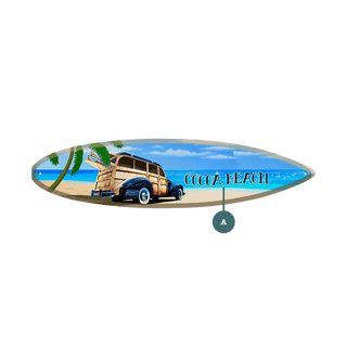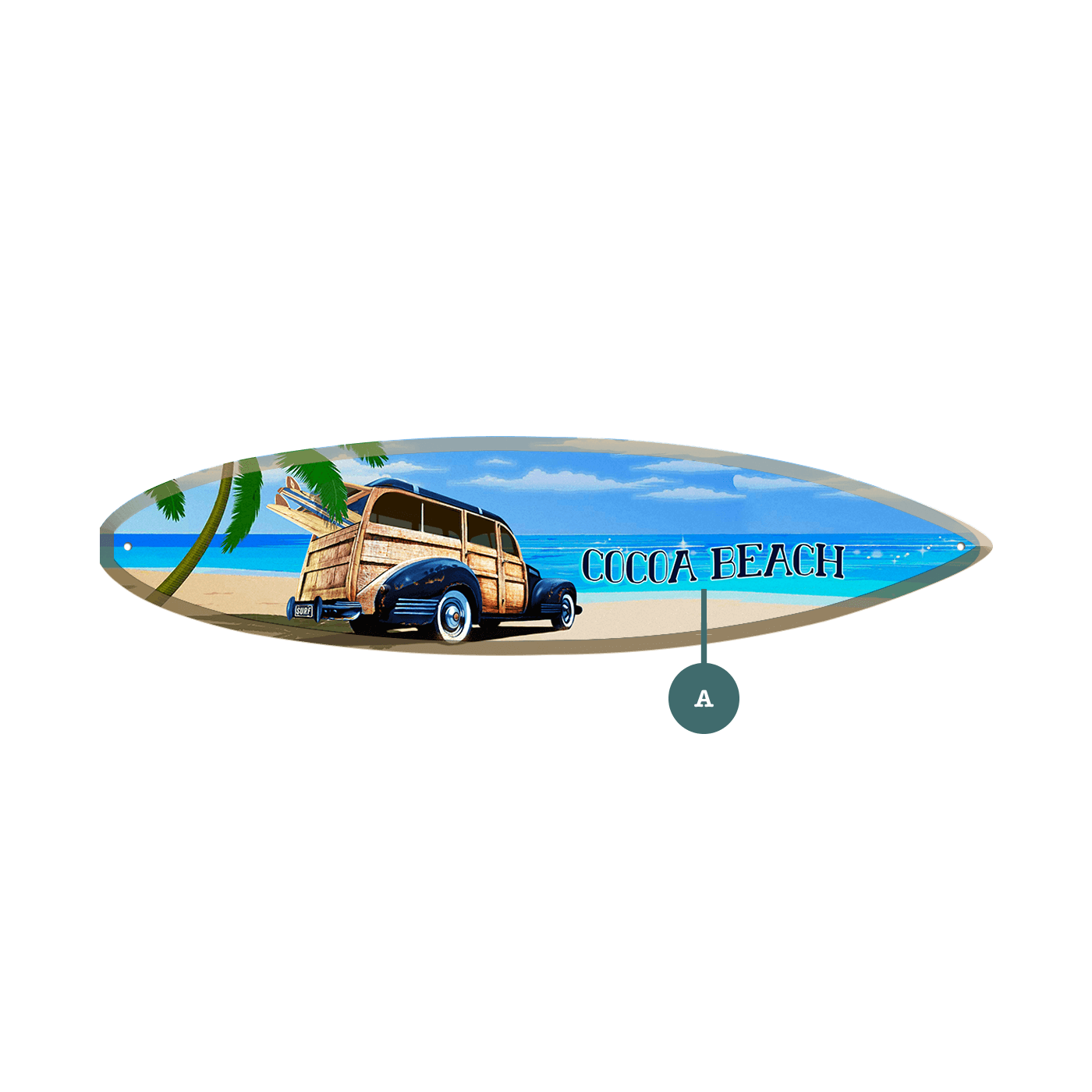 Embark on a nostalgic seaside journey with this vibrant surfboard artwork. Featuring a classic woody station wagon by the sun-drenched sands and palm trees, this piece perfectly captures the essence of the ultimate beach getaway. Ideal for anyone who cherishes the old-school surf culture and dreams of leisurely beach days. This surfboard art brings a slice of Cocoa Beach’s iconic coastal vibe to your home or office, making it a stunning addition to any beach lover’s collection.
