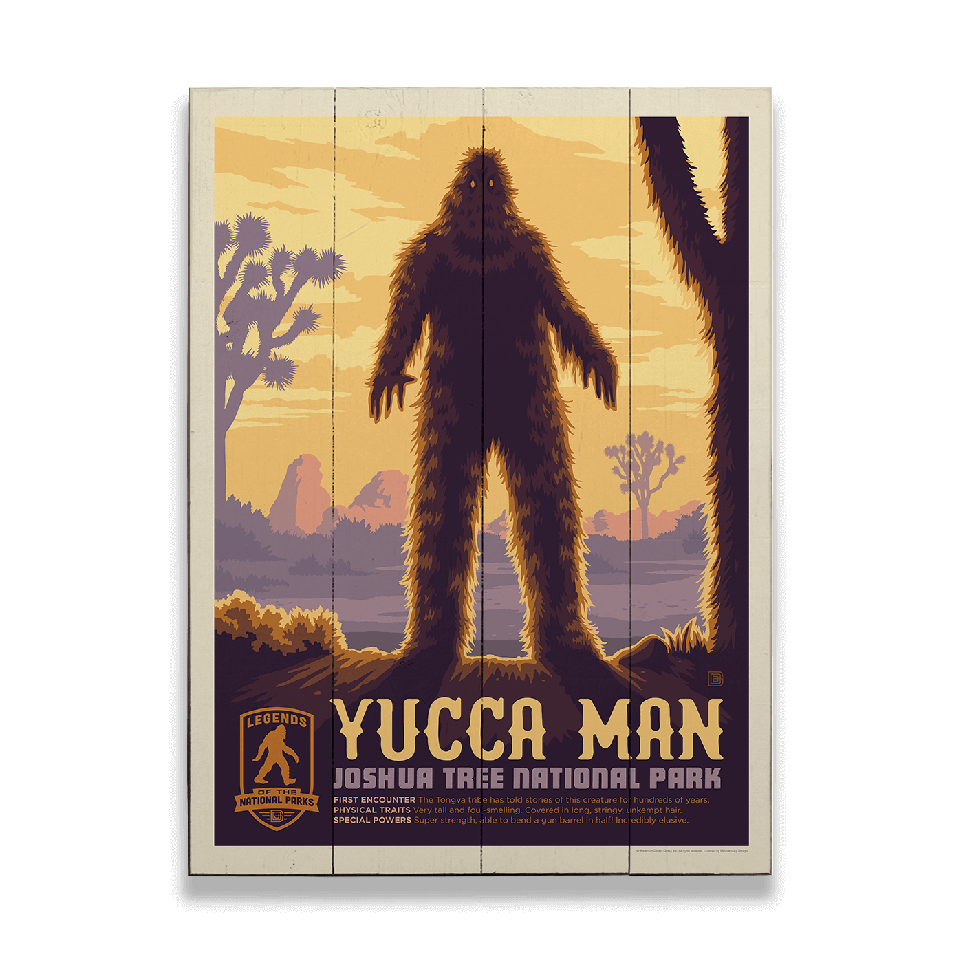 The "Legends of the National Parks" series is a captivating collection of artwork that delves into the folklore and mythology surrounding America's National Parks. Each piece in the series is a visually striking representation of a legendary creature said to inhabit the wilderness of a particular park. The creatures, drawn from local myths, tales, and cryptozoological reports, are rendered in a style that invokes the wonder of vintage travel posters, marrying the aesthetic of a bygone era with the mystery of modern legends. This series not only celebrates the natural beauty and diverse landscapes of the National Parks but also pays homage to the traditions of the regions, each artwork bringing to life a story that is an integral part of the park's cultural fabric.